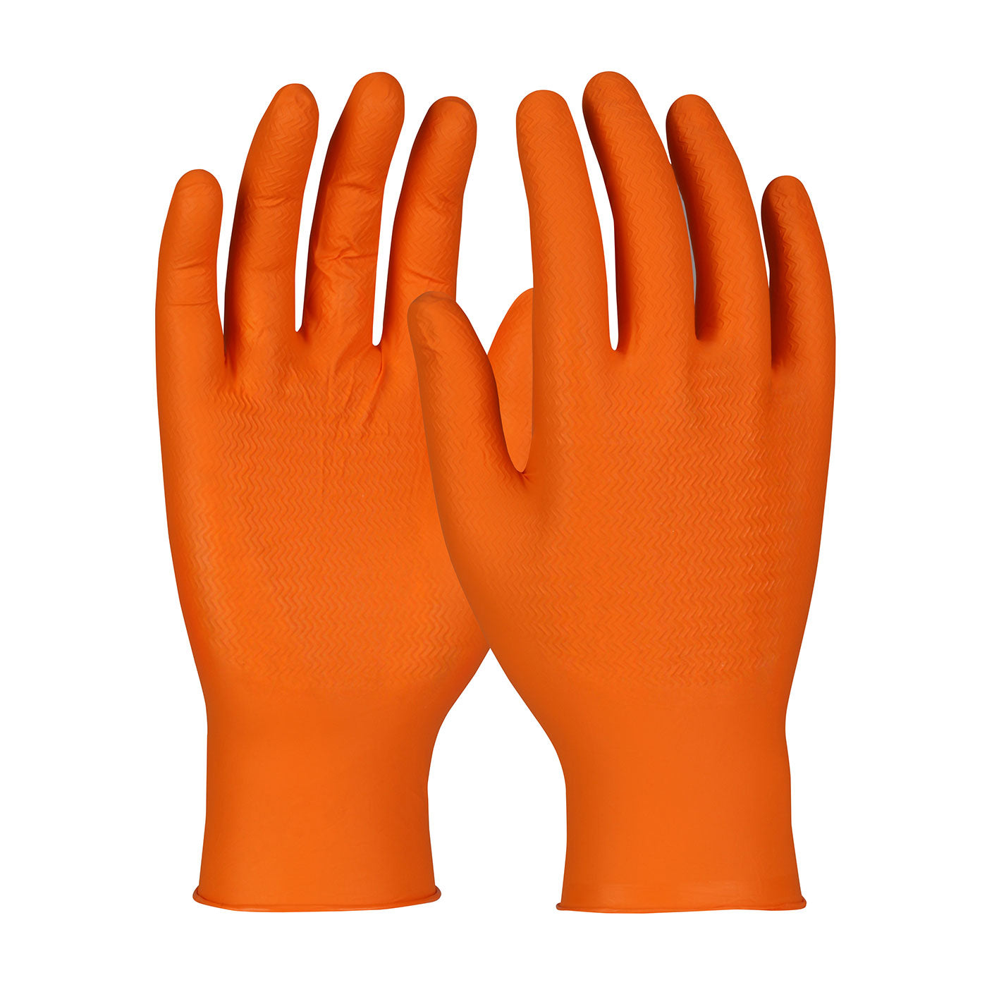 Disposable Nitrile Glove, Powder Free with Textured Zigzag Grip - 8 Mil SWX00438 AVAILABLE COLORS: ORANGE SIZE: XL PACKED: 50/bx POLYMER: Nitrile POWDER: Powder Free